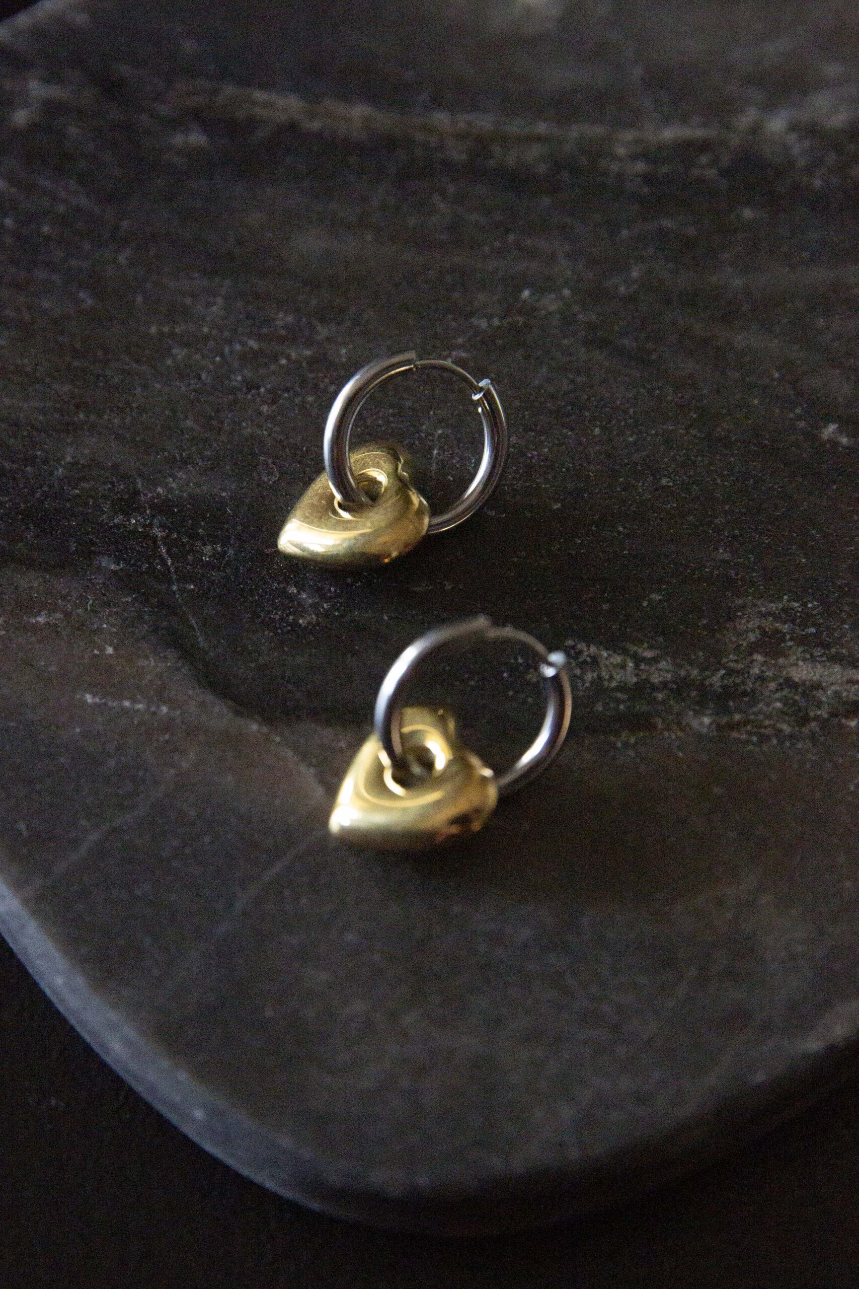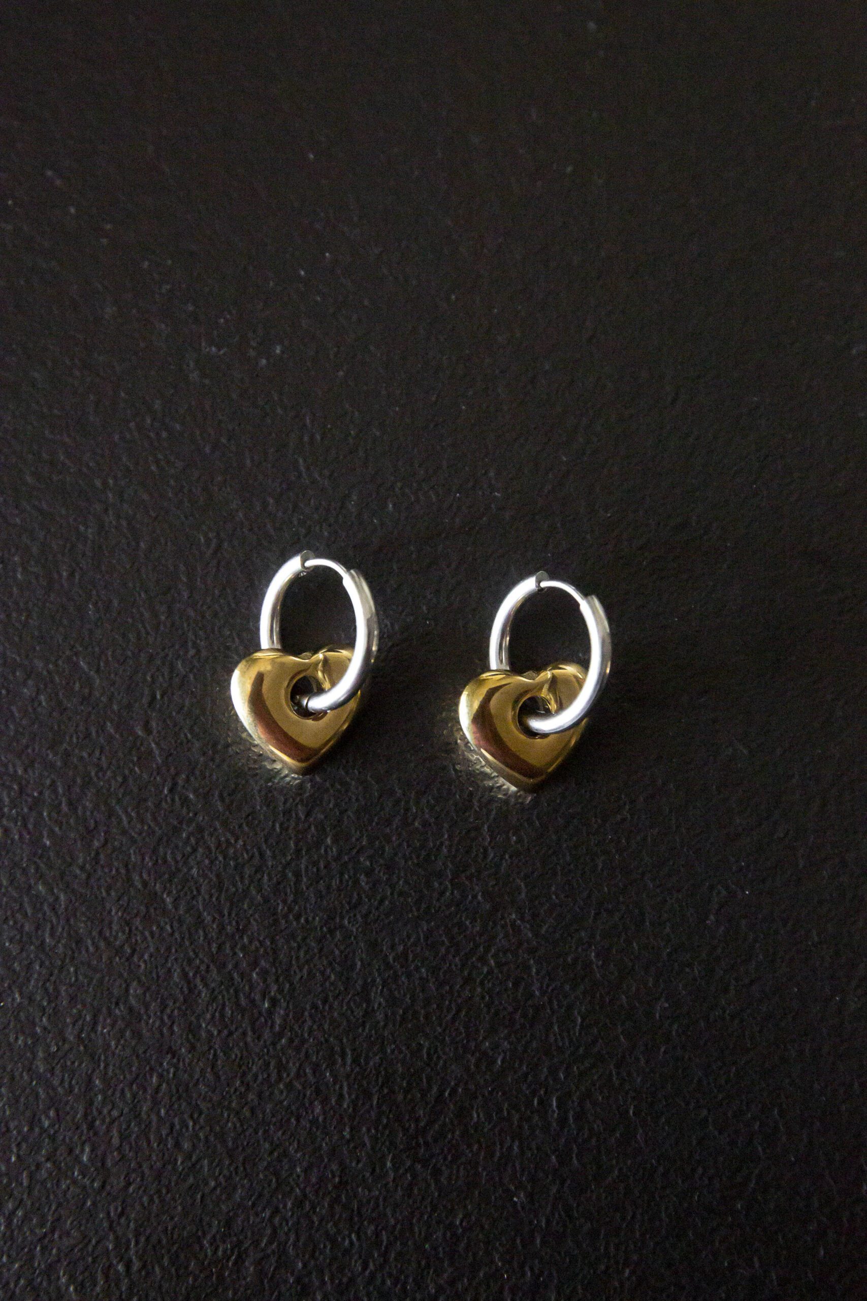 Delicate and timeless, the Everheart Hoops combine modern elegance with a touch of romance. Crafted from sleek silver, each hoop features a dainty gold heart charm that gently dangles, adding a playful yet sophisticated flair. Perfectly sized for everyday wear, these hoops effortlessly transition from casual outings to special occasions, making them a versatile addition to any jewelry collection.