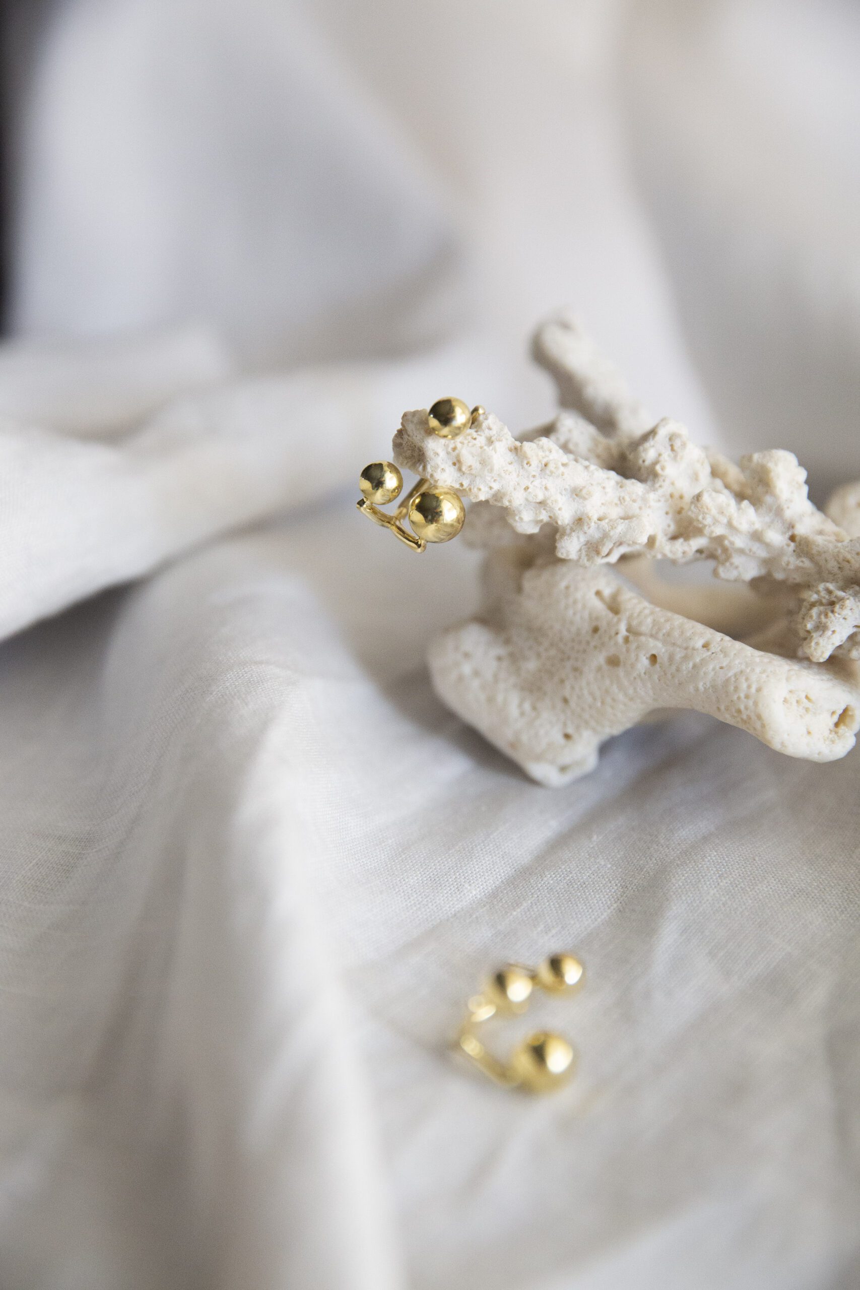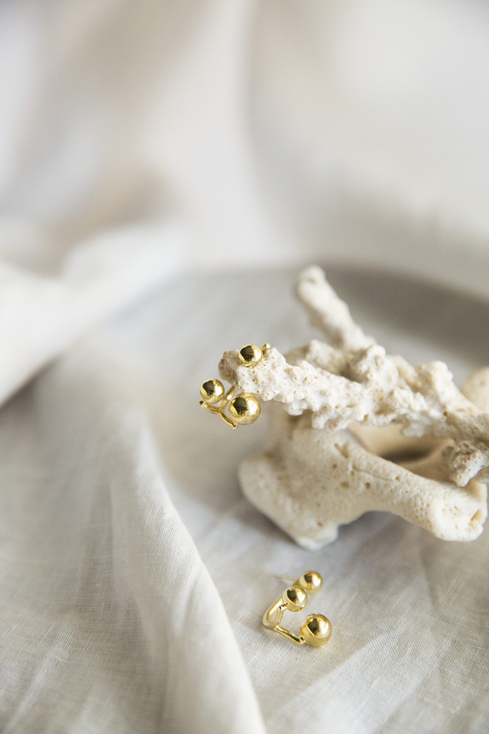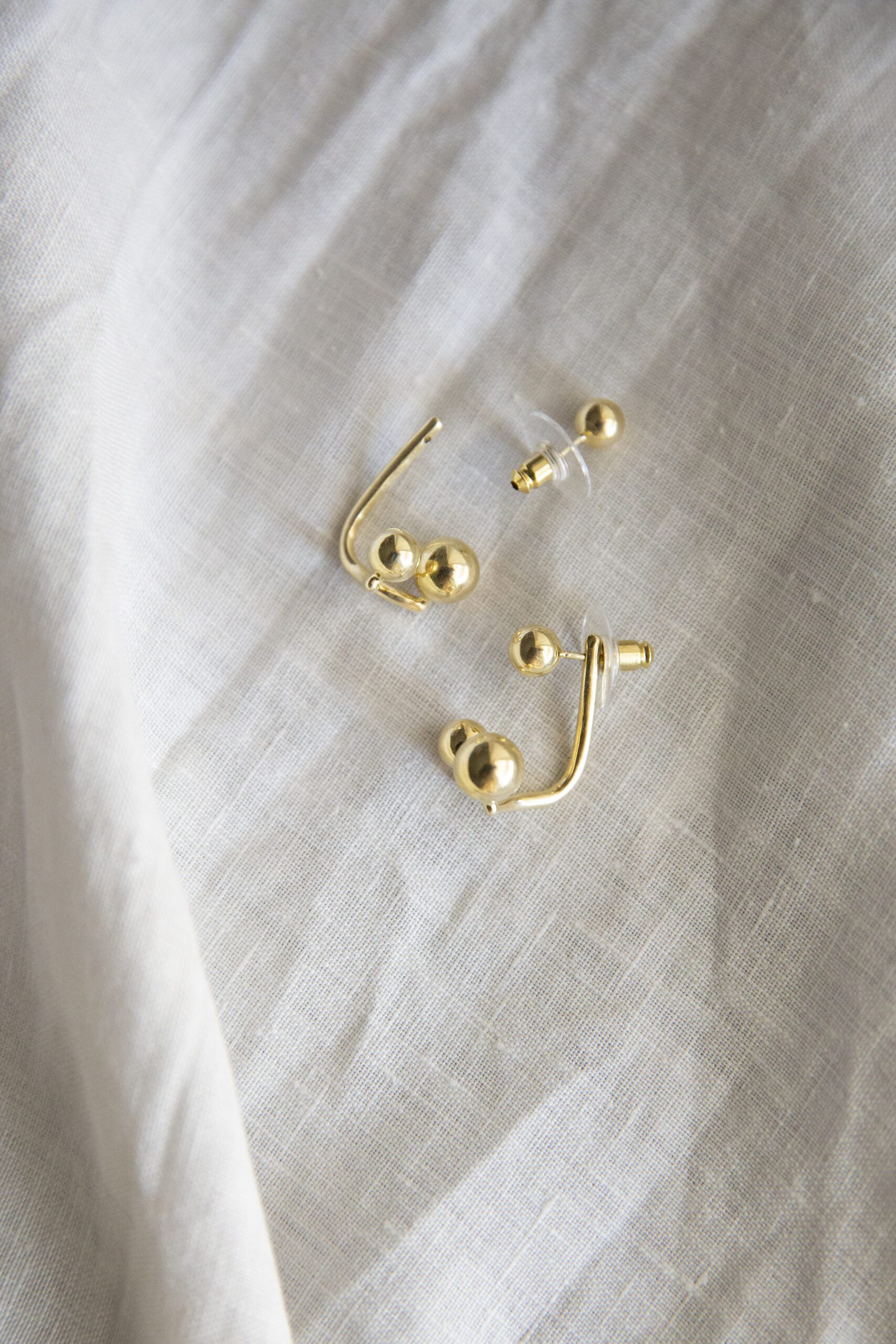 The Jay earrings offer a contemporary twist on classic elegance. Their trio of polished golden spheres, suspended in a staggered arrangement, creates a dynamic yet balanced silhouette. Designed to be worn asymmetrically, they add a touch of modern flair to any ensemble. Crafted from gold-plated brass, these earrings are both lightweight and striking, making them a versatile addition to your jewelry collection.