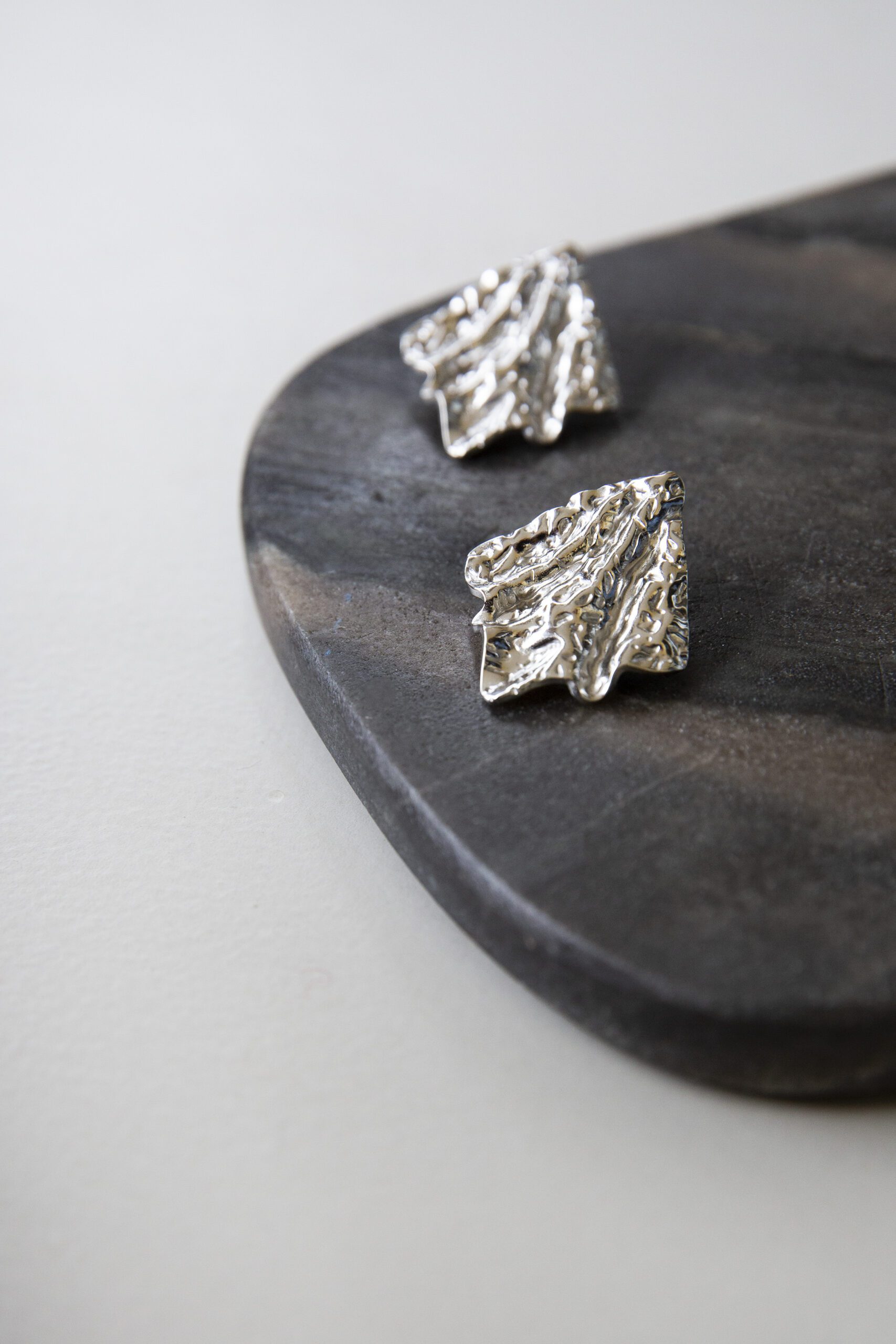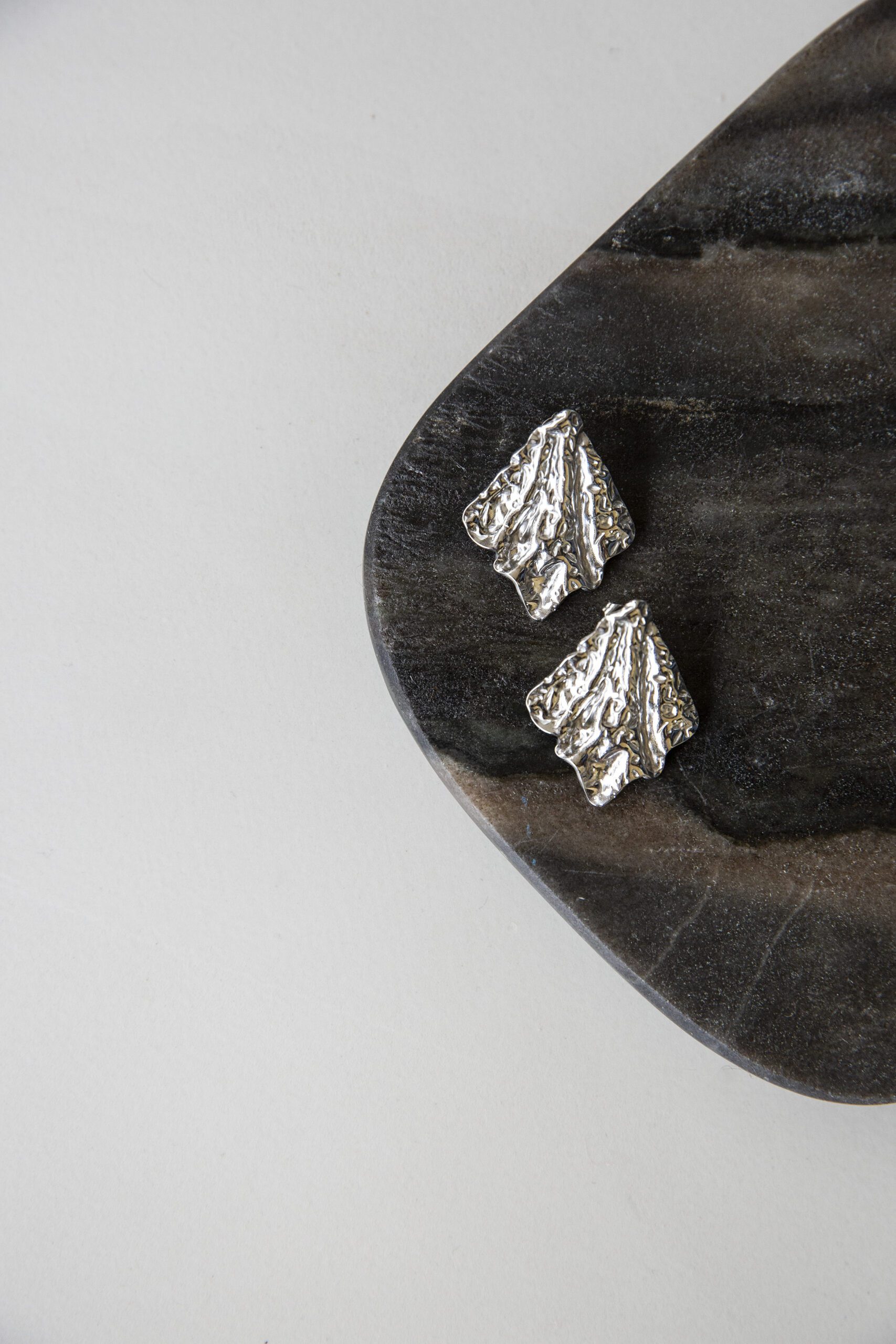 Veil Earrings feature softly folded, wave-like forms crafted from polished silver steel. Their flowing, organic shapes catch the light with subtle brilliance, creating a sense of delicate movement. A refined and artistic design, perfect for adding understated elegance to any outfit.
